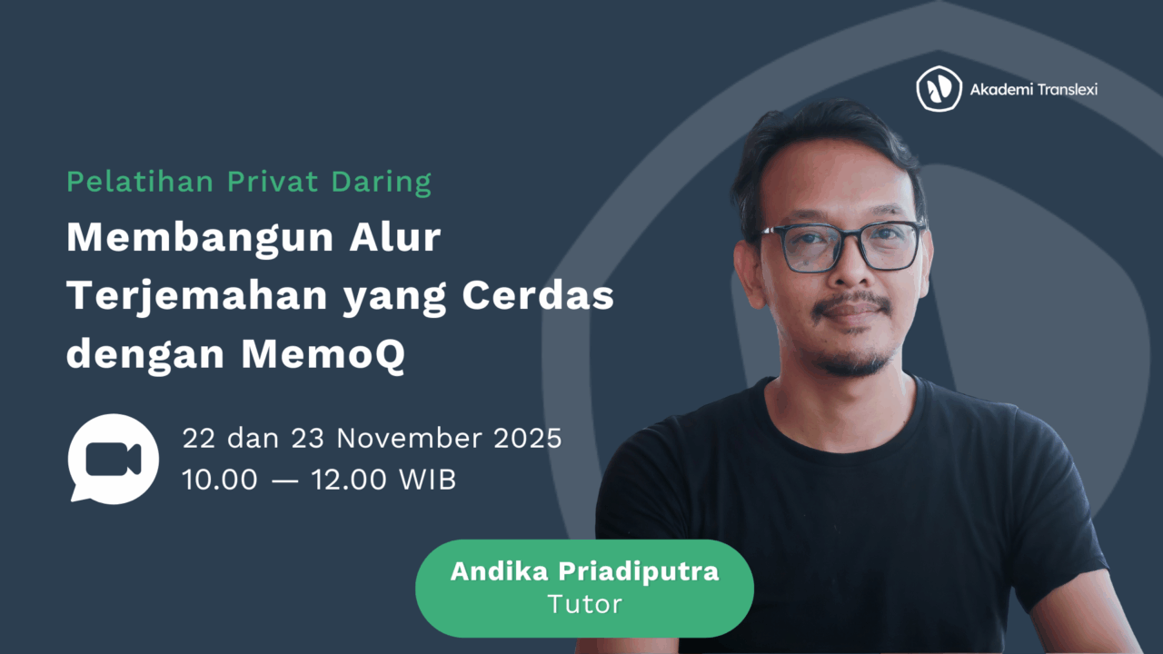 Pelatihanardanariswara11 Agustus 2024 Membangun Alur Terjemahan yang Cerdas dengan Trados Rp350.000 Membangun Alur Terjemahan yang Cerdas dengan MemoQ Rp350.000 Kupas Tuntas MemoQ | 24-25 Agustus 2024 (Berakhir) Rp300.000 Kupas Tuntas MemoQ | 25 Mei 2024 (Berakhir) Rp300.000 Kupas Tuntas MemoQ | 11-12 Mei 2024 (Berakhir) Rp250.000